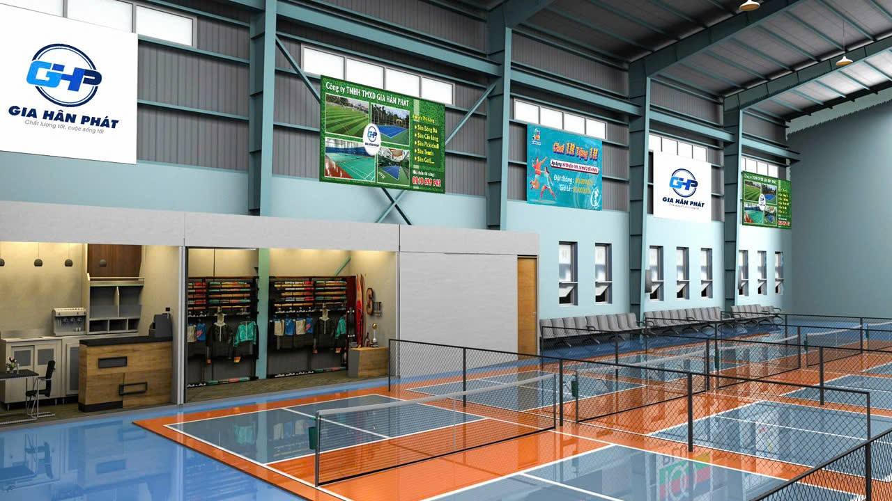 Thi công sân cầu lông trong nhà