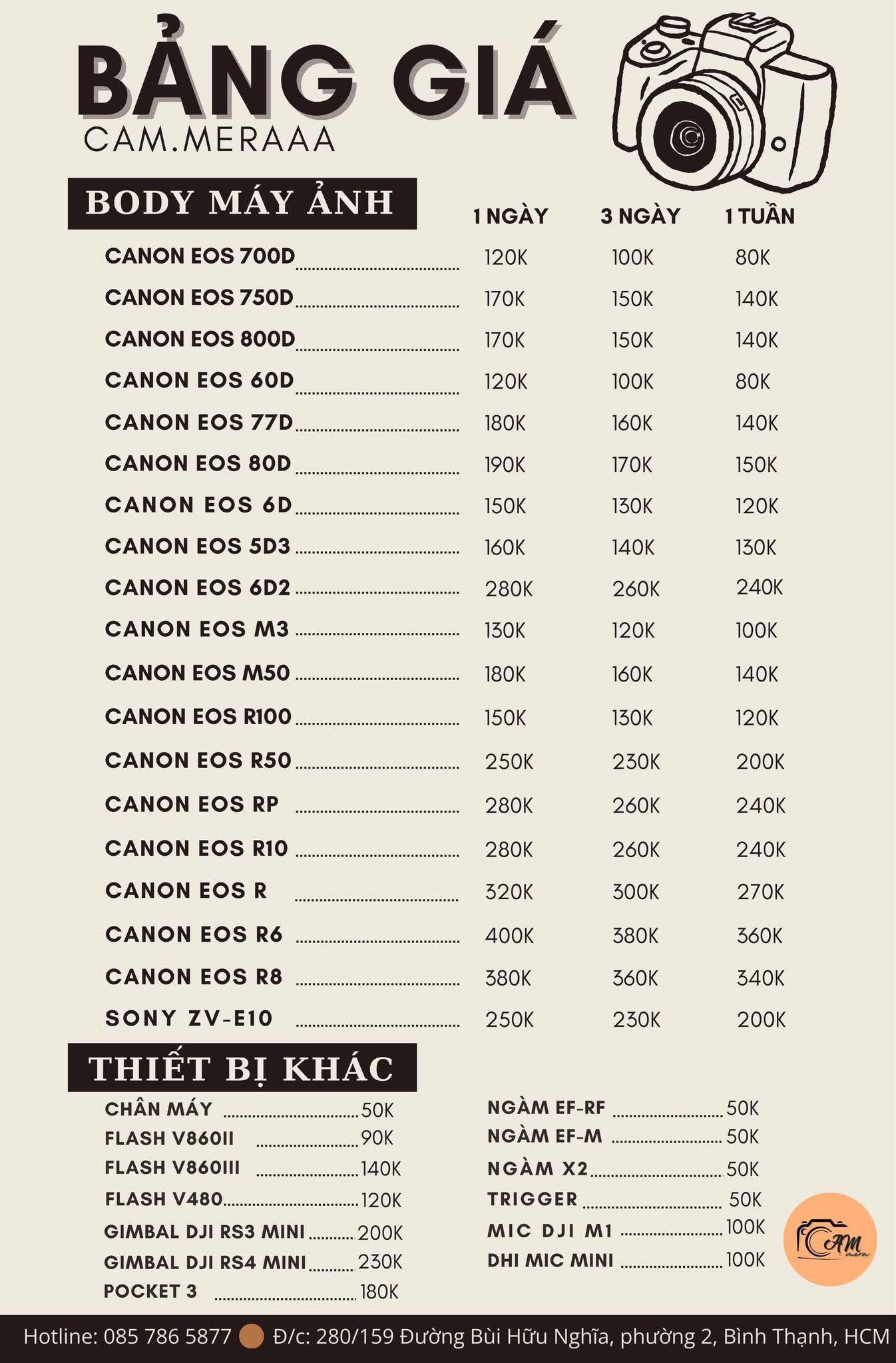 2. Chính sách ưu đãi cực tốt cho học sinh, sinh viên: Hiểu được giới hạn về ngân sách của các bạn trẻ, CAM.mera thường xuyên có các gói combo thuê máy + lens với mức giá cực kỳ cạnh tranh. Thủ tục tại đây cũng được tối giản hóa, giúp các bạn sinh viên dễ dàng tiếp cận thiết bị mà không gặp quá nhiều khó khăn về mặt giấy tờ hay tiền cọc.