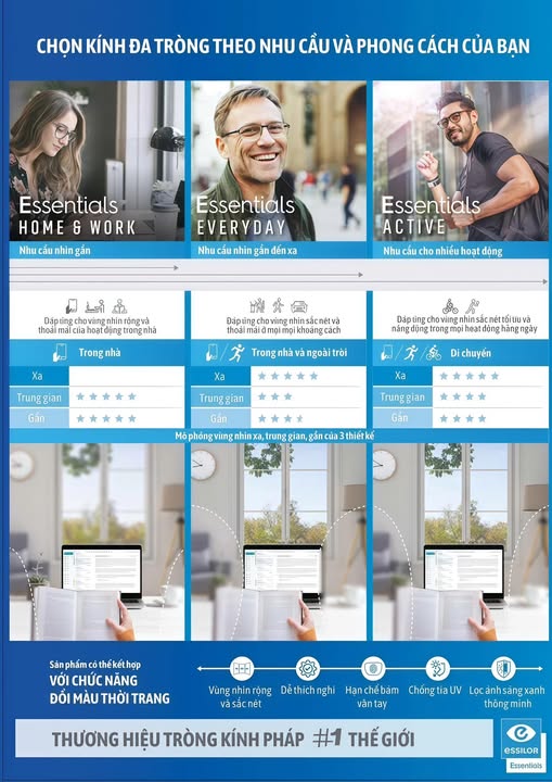 Cửa hàng cung cấp đầy đủ các loại tròng kính từ các thương hiệu danh tiếng thế giới như Essilor (Pháp), Zeiss (Đức), Chemi (Hàn Quốc)... với các tính năng ưu việt:
