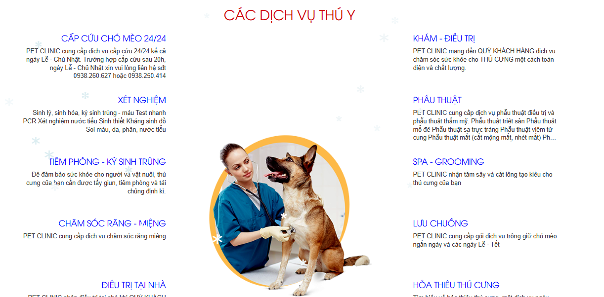 Tại PET CLINIC, khách hàng có thể sử dụng nhiều dịch vụ như:
