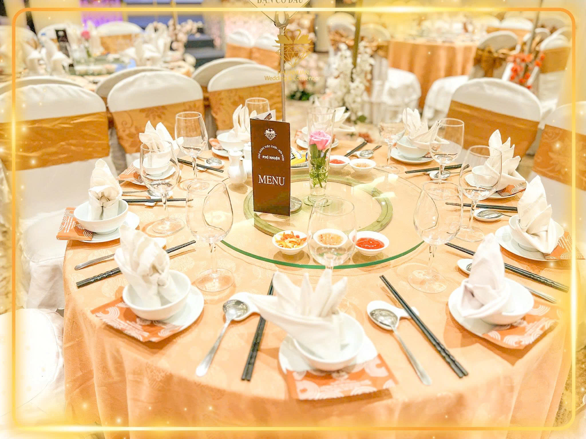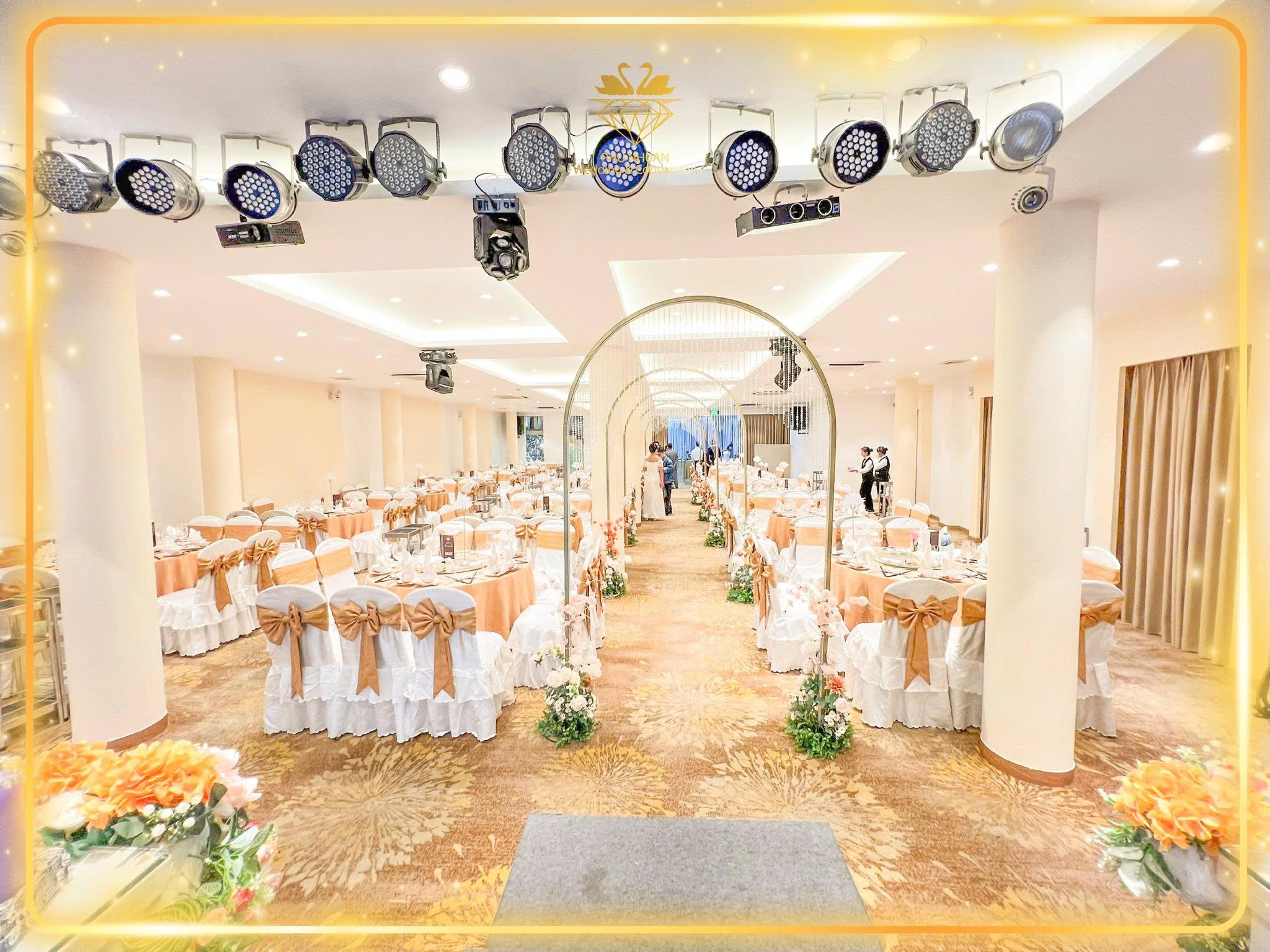 Ngoài ra, thực đơn tiệc cưới cũng được thiết kế đa dạng để phù hợp với nhiều khẩu vị khác nhau, mang đến những trải nghiệm ẩm thực tinh tế và trọn vẹn. Hệ thống âm thanh – ánh sáng hiện đại giúp khách mời thưởng thức trọn vẹn từng khoảnh khắc của buổi lễ, từ những màn trình diễn ấn tượng cho đến giây phút thiêng liêng đôi uyên ương trao lời thề ước. Tất cả đều hướng đến mục tiêu: Để mỗi khách mời rời khỏi buổi tiệc đều cảm thấy hài lòng, vui vẻ và tràn đầy kỷ niệm đẹp đáng nhớ.