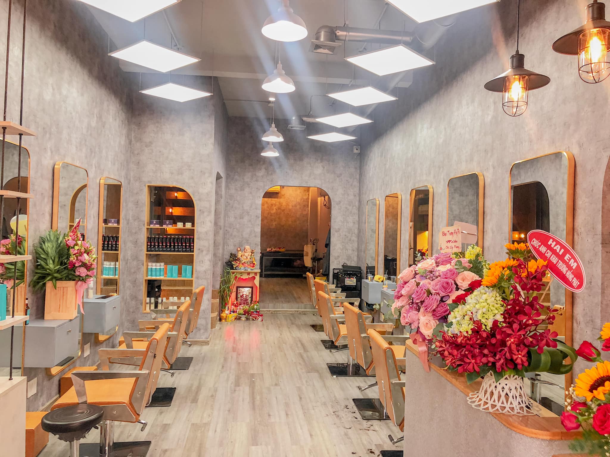 Không gian được chia thành nhiều khu vực riêng: cắt, gội, tạo kiểu, chăm sóc tóc chuyên sâu, đảm bảo riêng tư – sạch sẽ – tiện nghi cho khách hàng.