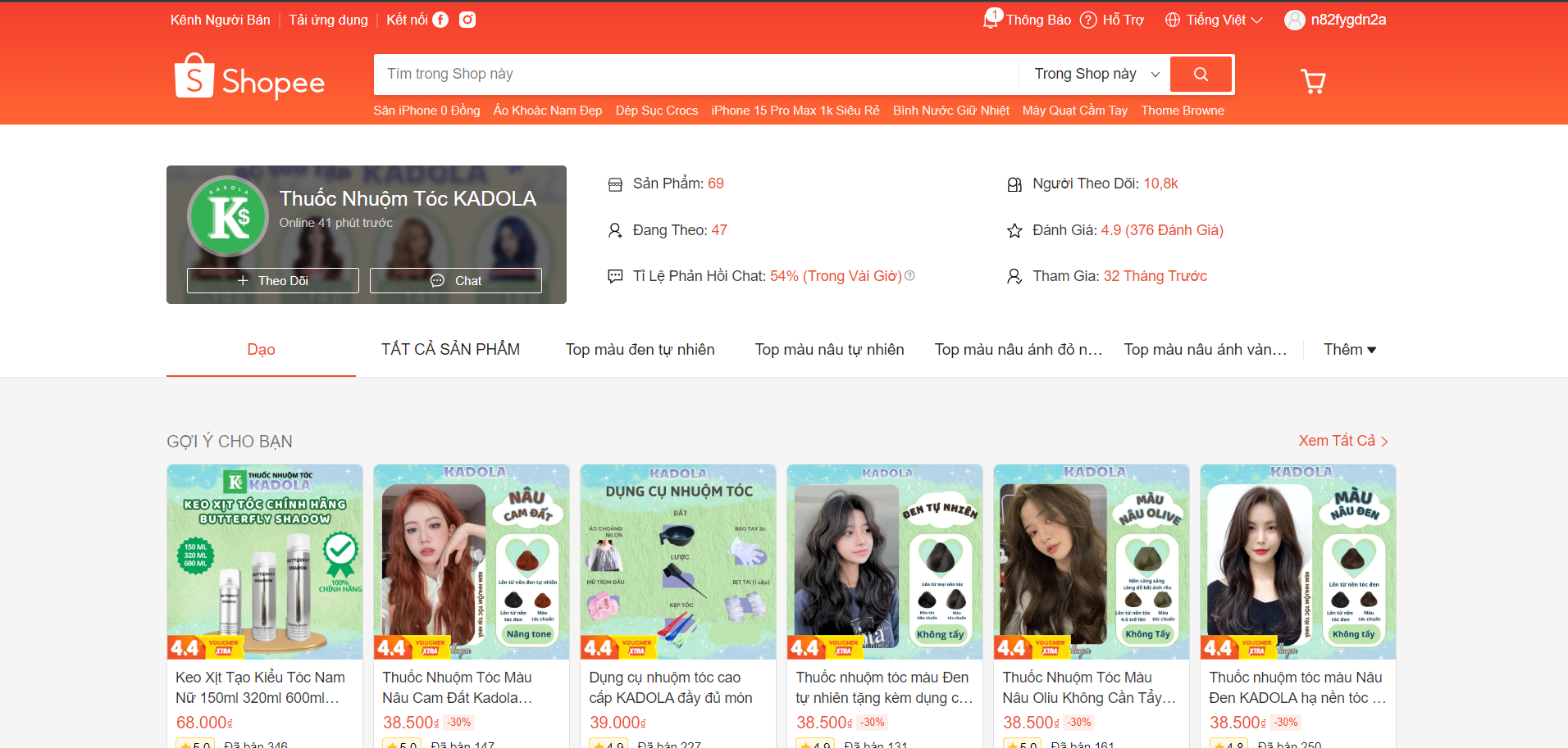 1. Kadola – Top 1: Thuốc nhuộm tóc giá rẻ chất lượng cao, bán chạy nhất Shopee