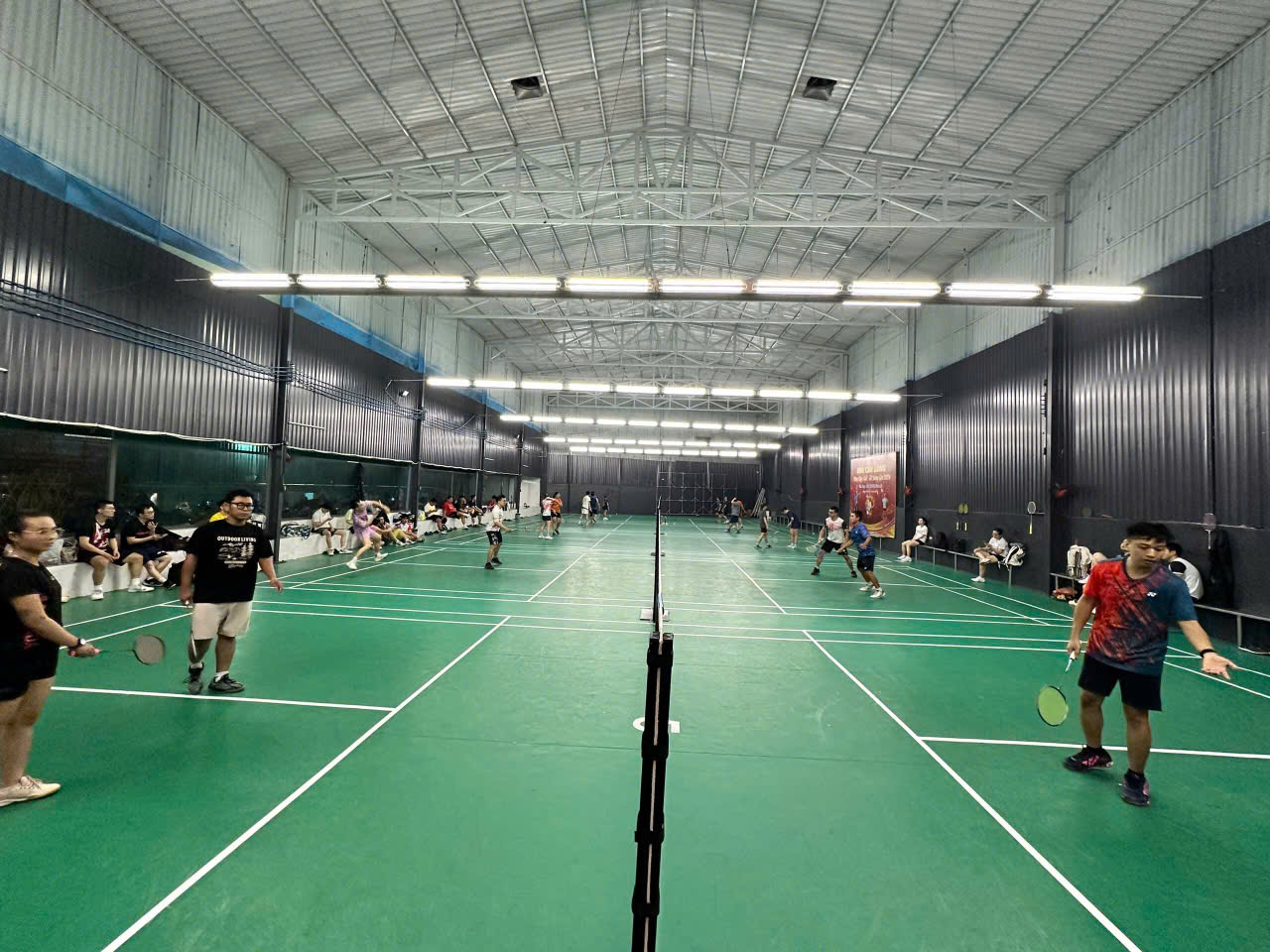 Không gian rộng rãi: Trần cao, khoảng cách sân hợp lý, tạo cảm giác thoải mái khi thi đấu