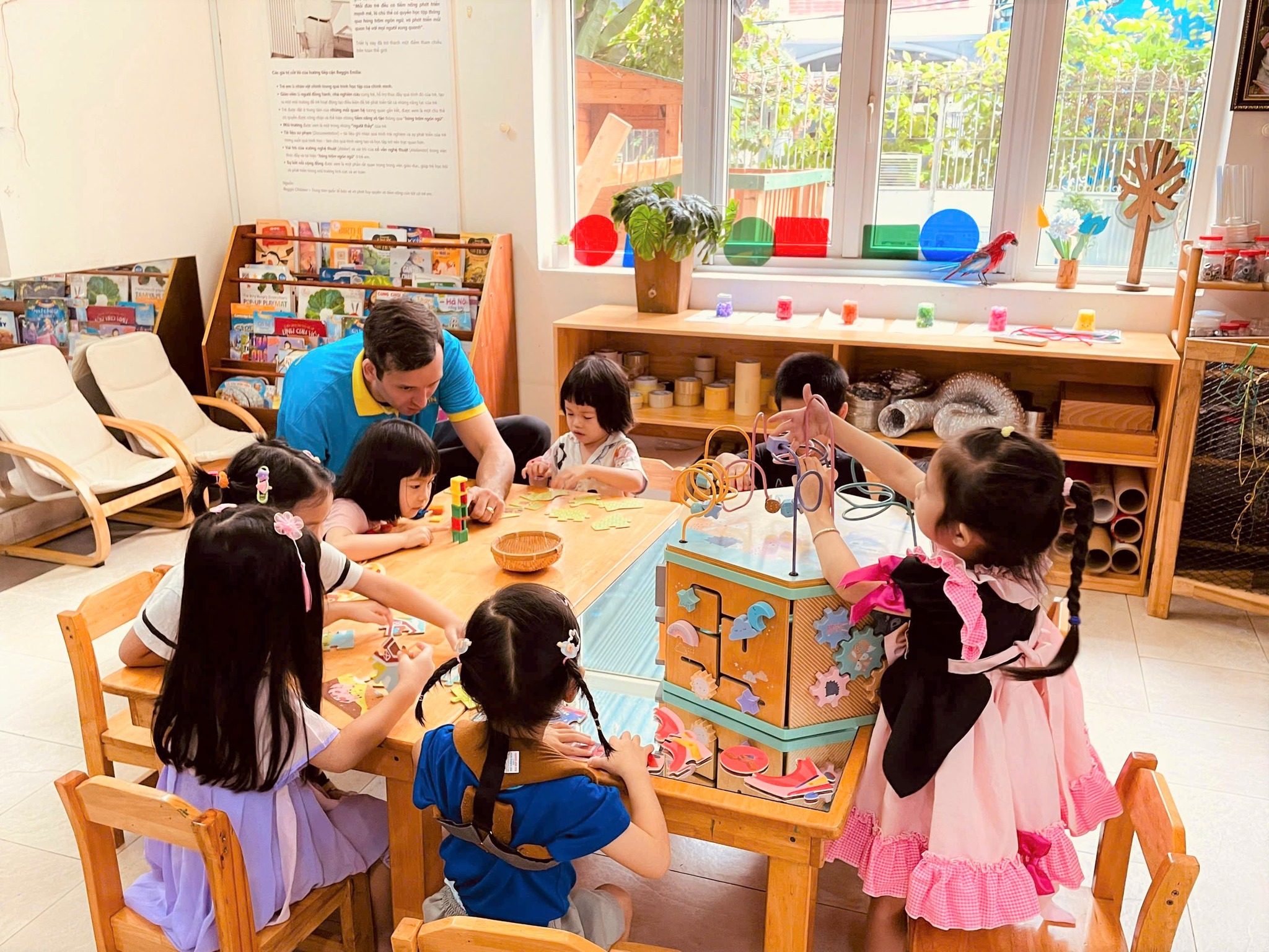 Bên cạnh đó, trường sở hữu không gian học tập được thiết kế khoa học, sử dụng giáo cụ Montessori chuyên biệt nhằm kích thích sự phát triển toàn diện của trẻ. Đội ngũ giáo viên có chuyên môn và luôn theo sát từng giai đoạn phát triển, giúp phụ huynh an tâm khi gửi gắm con em.