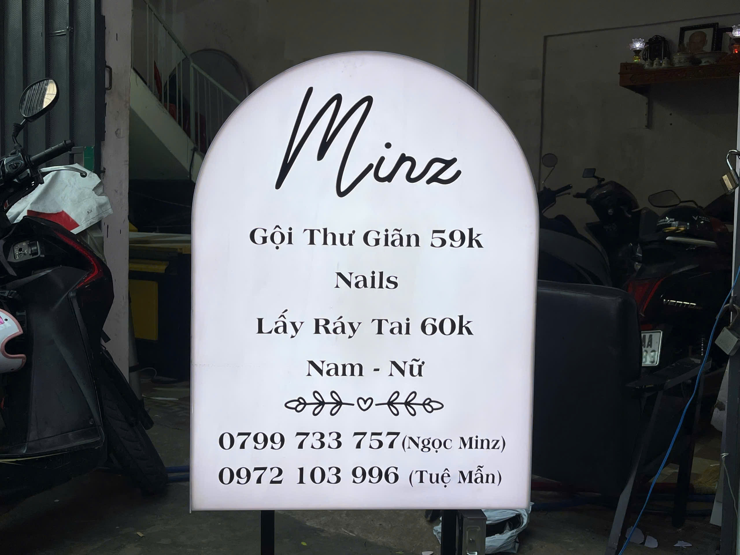 Dự án bảng hiệu tròn cho tiệm nail “Minz” là một trong những mẫu đơn giản nhưng cực kỳ hiệu quả.