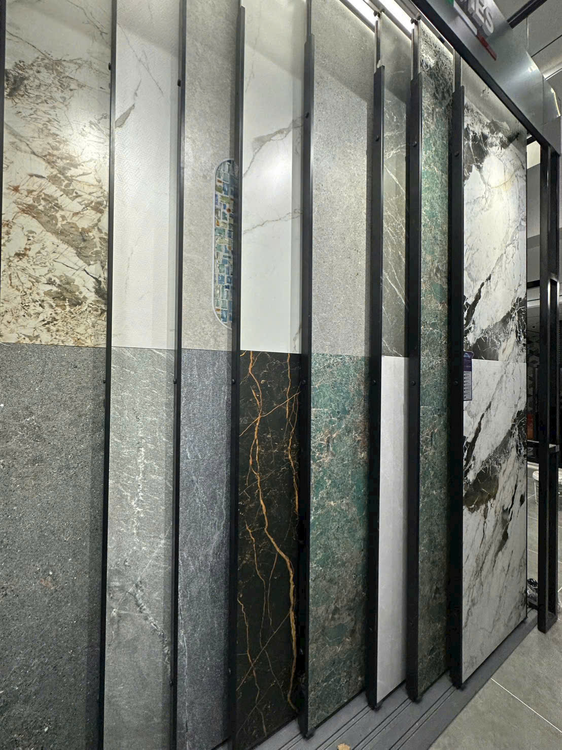 Showroom Hoàng Ân đặc biệt trưng bày các mẫu gạch mô phỏng vân đá tự nhiên tinh xảo, đáp ứng gu thẩm mỹ cao cấp: