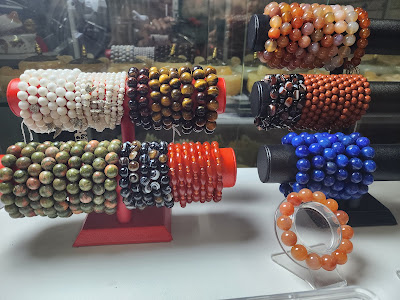 Trang sức phong thủy: Các mẫu vòng tay, mặt dây chuyền, nhẫn được chế tác tinh xảo từ nhiều loại đá như Thạch Anh (Tóc Vàng, Tóc Đen, Tóc Xanh, Dâu Tây, Ưu Linh), Mắt Hổ, Mã Não, Cẩm Thạch, Aquamarine, Moonstone... Mỗi chiếc vòng không chỉ là phụ kiện thời trang mà còn là một "lá bùa" hộ mệnh, mang lại may mắn, tài lộc, và bình an.