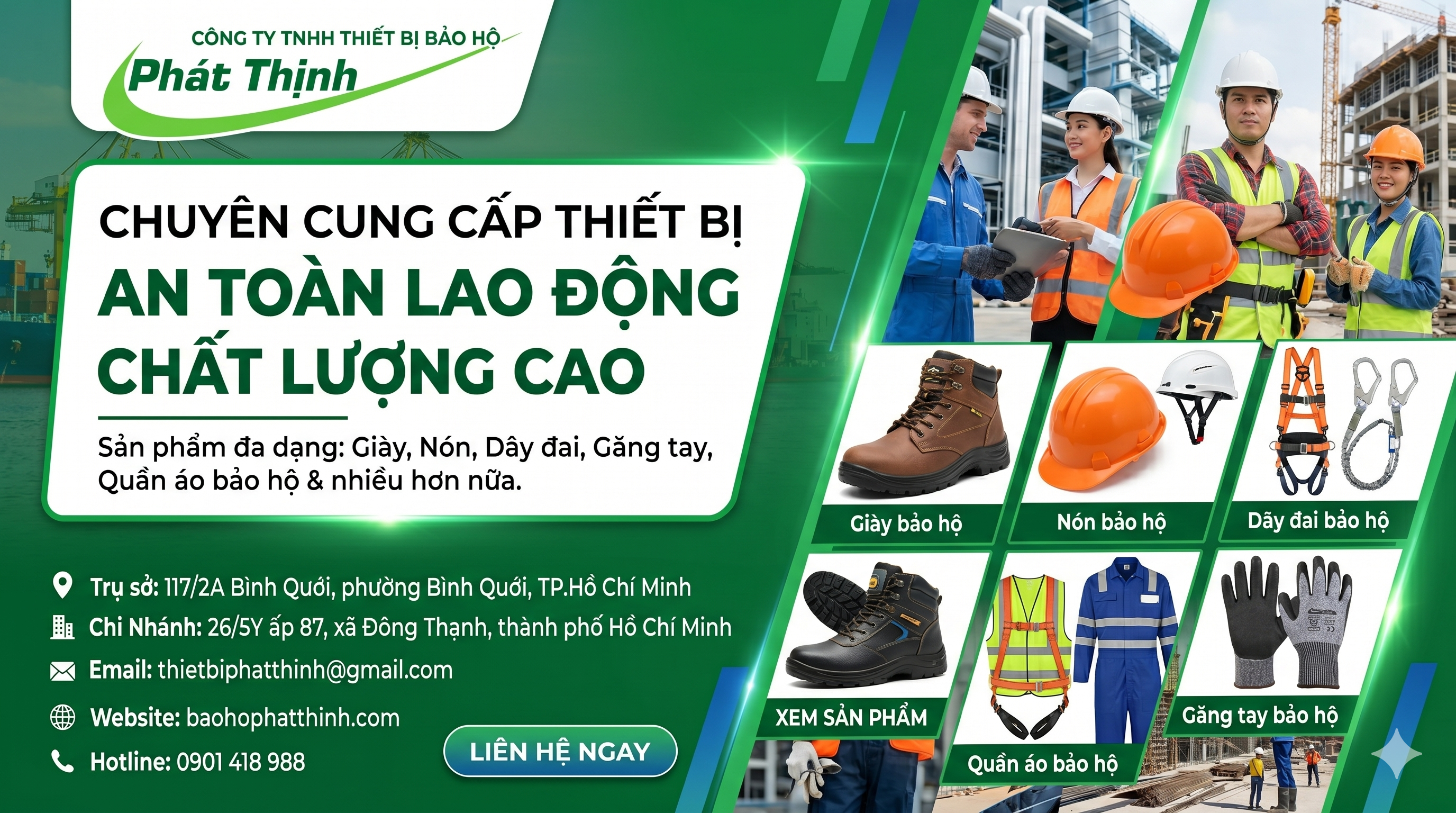 CÔNG TY TNHH THIẾT BỊ BẢO HỘ PHÁT THỊNH là một trong những đơn vị hàng đầu trong lĩnh vực cung cấp thiết bị bảo hộ lao động tại TP.HCM. Với nhiều năm kinh nghiệm, công ty đã xây dựng được uy tín vững chắc nhờ chất lượng sản phẩm và dịch vụ chăm sóc khách hàng tận tâm.