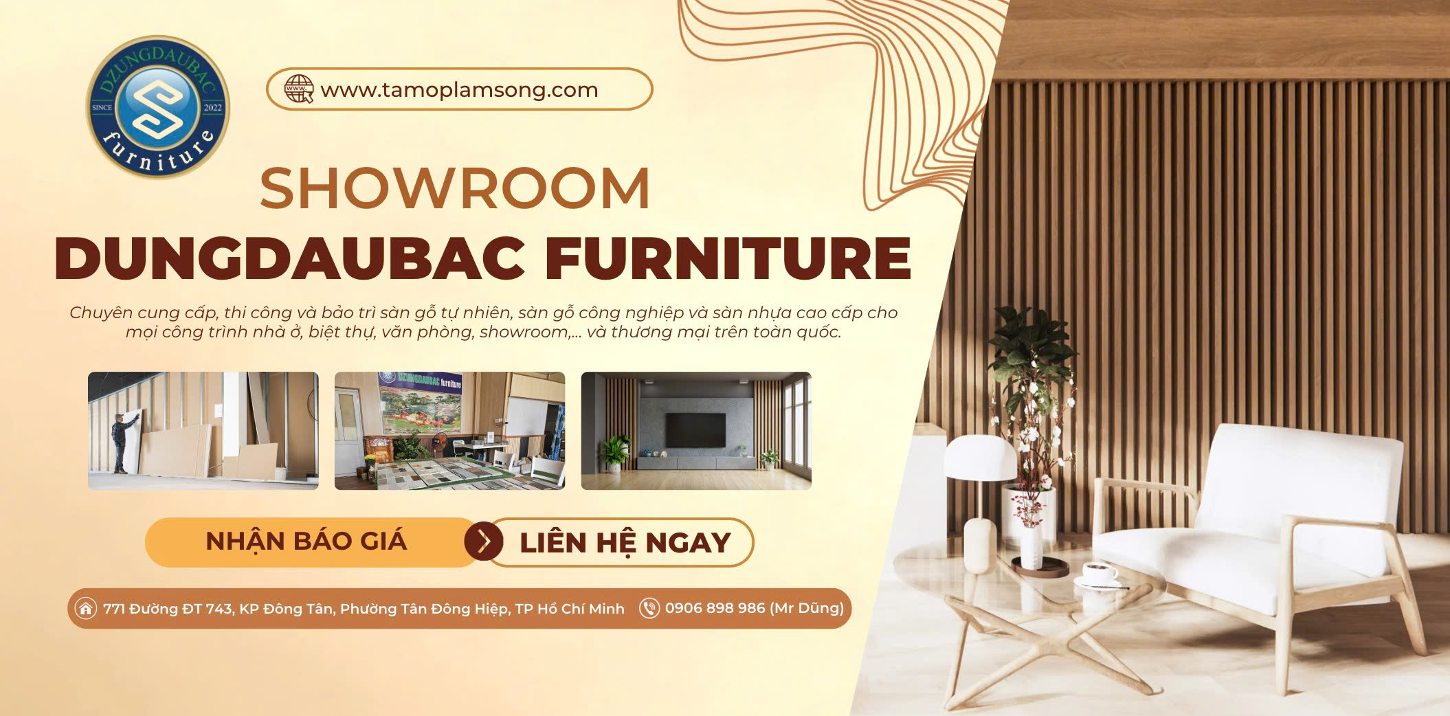 SHOWROOM DZUNGDAUBAC FURNITURE là thương hiệu hàng đầu chuyên phân phối sàn gỗ, tấm ốp nano, lam sóng trang trí với đa dạng mẫu mã và chất lượng vượt trội. Từ khi thành lập đến nay, showroom luôn đặt tiêu chí “Chất lượng – Uy tín – Dịch vụ” lên hàng đầu, mang đến cho khách hàng trải nghiệm mua sắm đáng tin cậy.