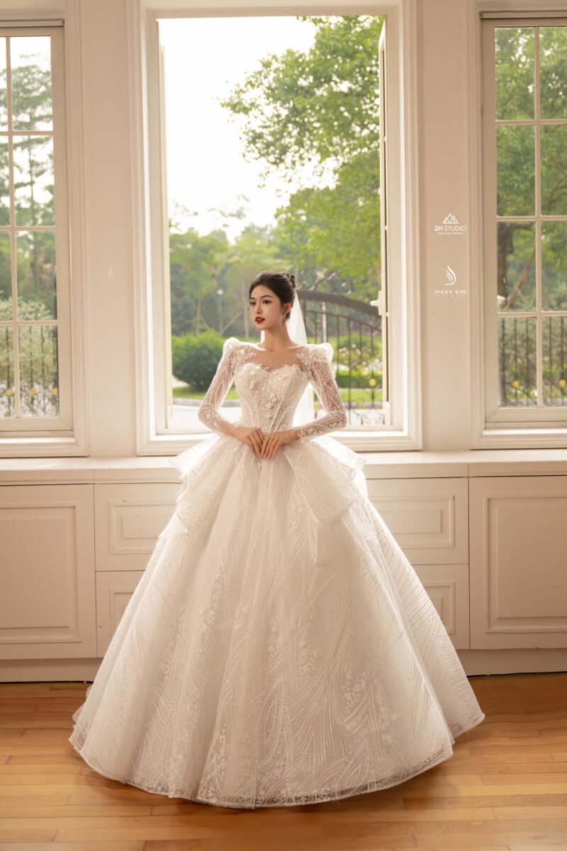 Váy cưới công chúa bồng bềnh, đính đá cao cấp