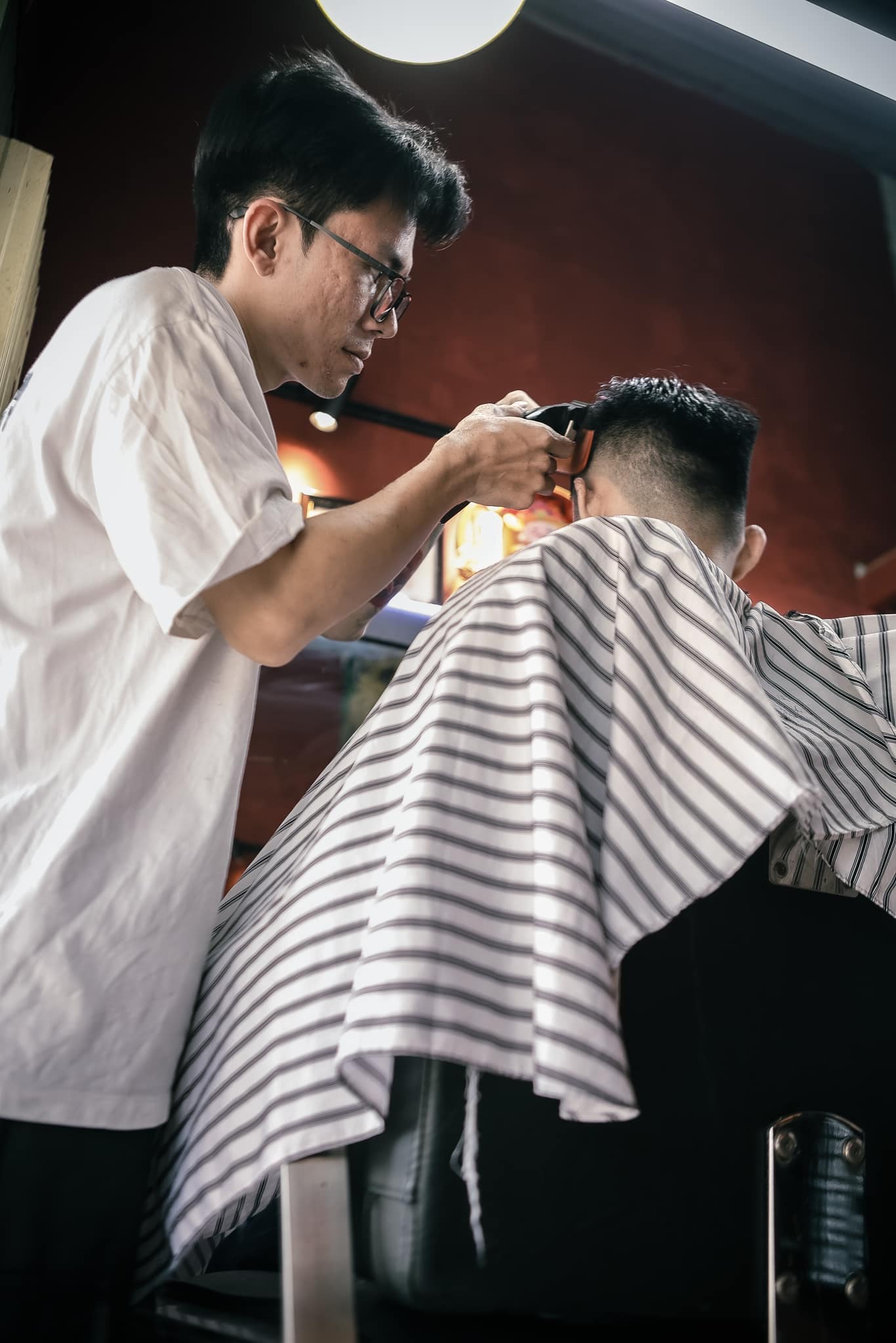 Mỗi đường kéo, mỗi lần fade đều được barber thực hiện cẩn thận đến từng chi tiết.