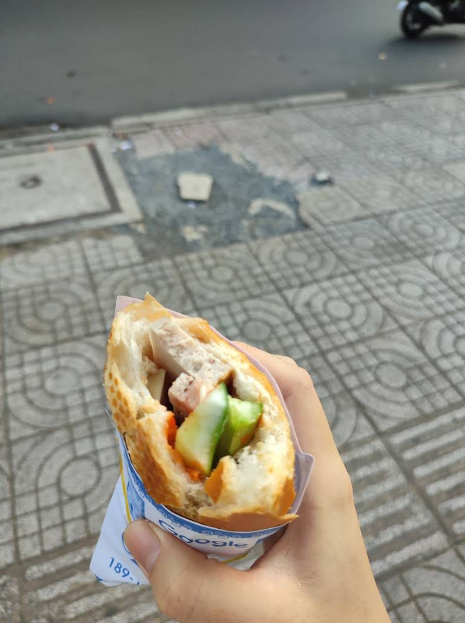 Ổ bánh có kích thước vừa phải, nhân nhiều, pate béo thơm, thịt tẩm ướp đậm vị, ăn no bụng mà không ngán. Điểm cộng lớn là giá cả hợp lý, phù hợp với học sinh, sinh viên và người lao động.