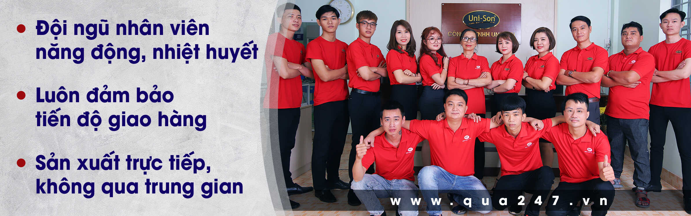 Đặc điểm nổi bật của Uni-Son là khả năng sản xuất theo yêu cầu với số lượng lớn, thời gian giao hàng nhanh chóng và dịch vụ tư vấn nhiệt tình. Với đội ngũ thiết kế chuyên nghiệp, Uni-Son cam kết mang đến cho khách hàng những sản phẩm đẹp mắt và chất lượng nhất (YellowPagesVN).