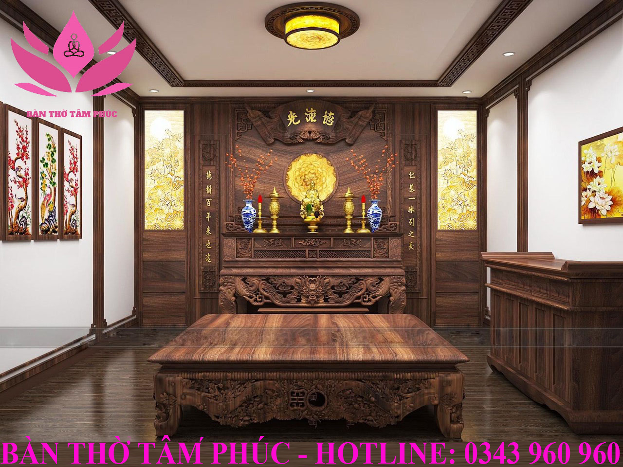 Tâm Phúc có khả năng thực hiện cả việc thiết kế phòng thờ, lắp đặt hoàn chỉnh — không chỉ bán sản phẩm đơn lẻ.