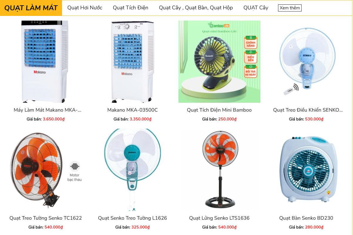 Đồ điện gia đình: quạt, máy lọc không khí, bàn ủi hơi nước, máy hút bụi, đèn LED tiết kiệm điện.