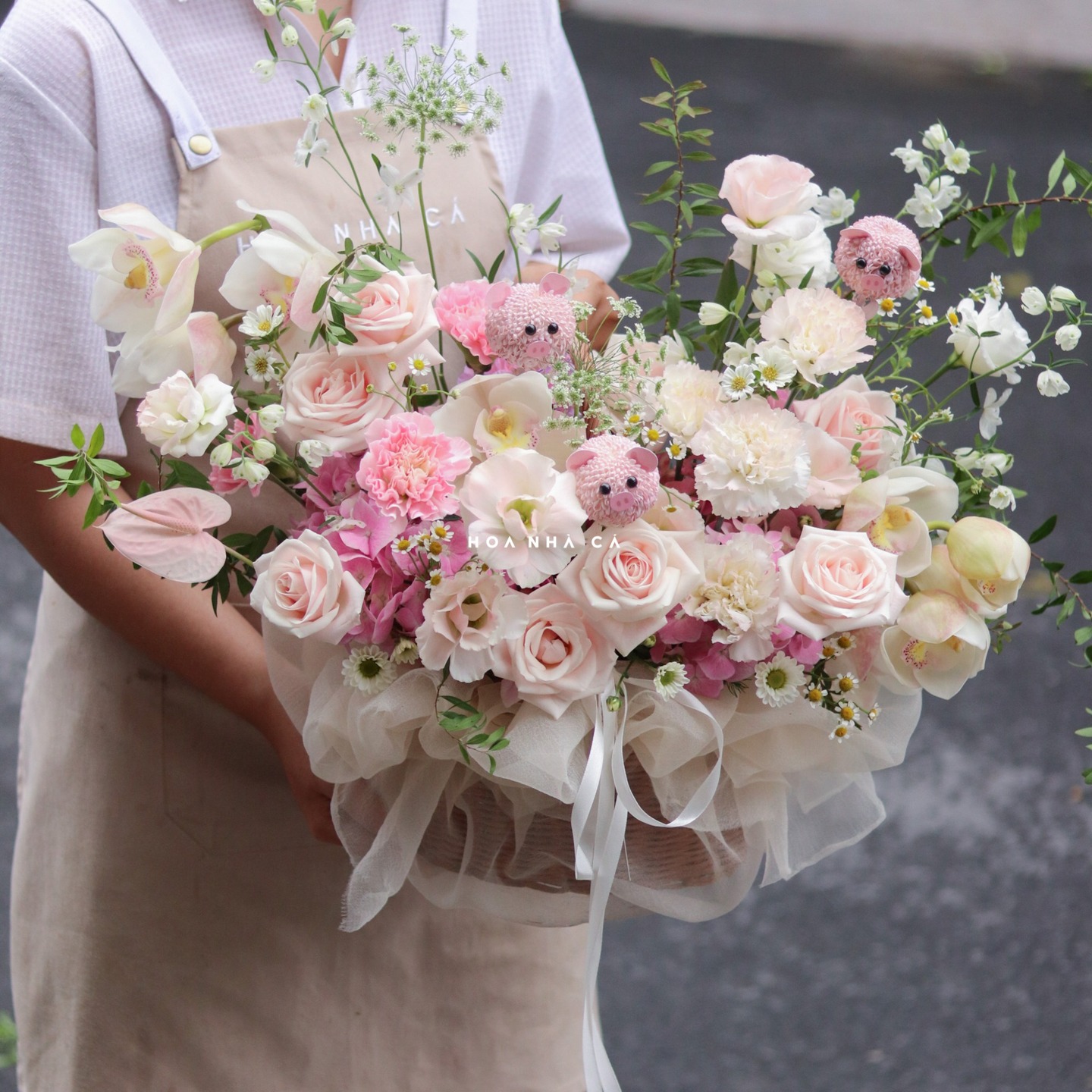Đội ngũ florist tại Hoa Nhà Cá có tay nghề cao, sẵn sàng tư vấn kiểu hoa phù hợp với từng dịp và ngân sách của khách hàng. Dù bạn cần bó hoa nhỏ xinh hay lẵng hoa lớn, cửa hàng đều đảm bảo đúng mẫu – đúng màu – đúng thông điệp.