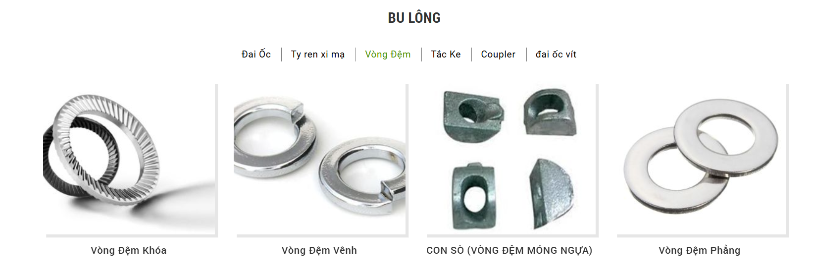 Long đen, đai ốc, ty ren và vật tư công nghiệp