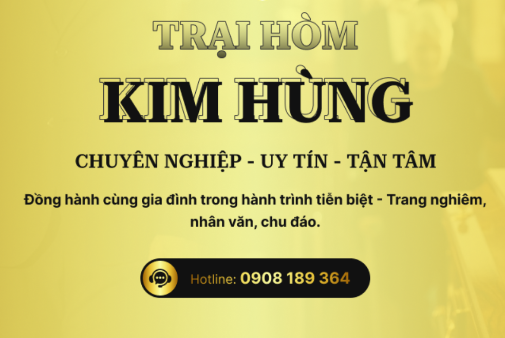 Trại Hòm Kim Hùng cam kết mang đến dịch vụ tang lễ chu đáo, nhanh chóng và đầy tính nhân văn. Mỗi nghi thức, mỗi chi tiết trong buổi lễ đều được thực hiện cẩn trọng, thể hiện sự tôn kính với người đã khuất và sự sẻ chia cùng gia quyến.