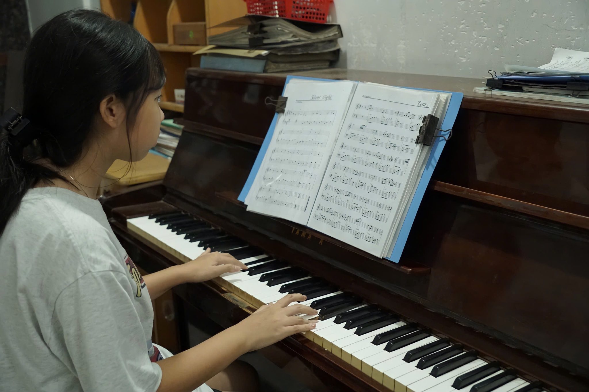 Không gian lớp thoáng, gần gũi, không quá rộng nhưng tạo cảm giác ấm của một lớp gia đình, phù hợp cho phụ huynh tìm lớp cho bé luyện tư duy âm nhạc chậm nhưng bền, hoặc người trưởng thành muốn học để chơi nhạc đúng cơ bản mà không theo con đường thi cử học thuật.