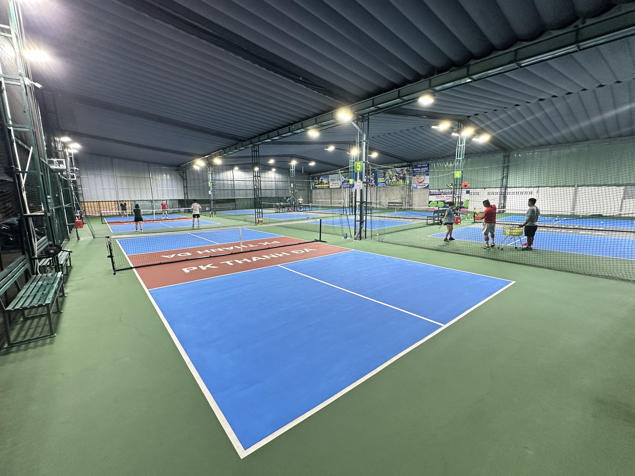 Sala Pickleball gây ấn tượng với sự phối màu hiện đại giữa xanh dương và tím than, tạo cảm giác chuyên nghiệp và bắt mắt. Đây là địa điểm lý tưởng cho những ai muốn kết hợp giữa tập luyện và chụp ảnh check-in sống ảo.
