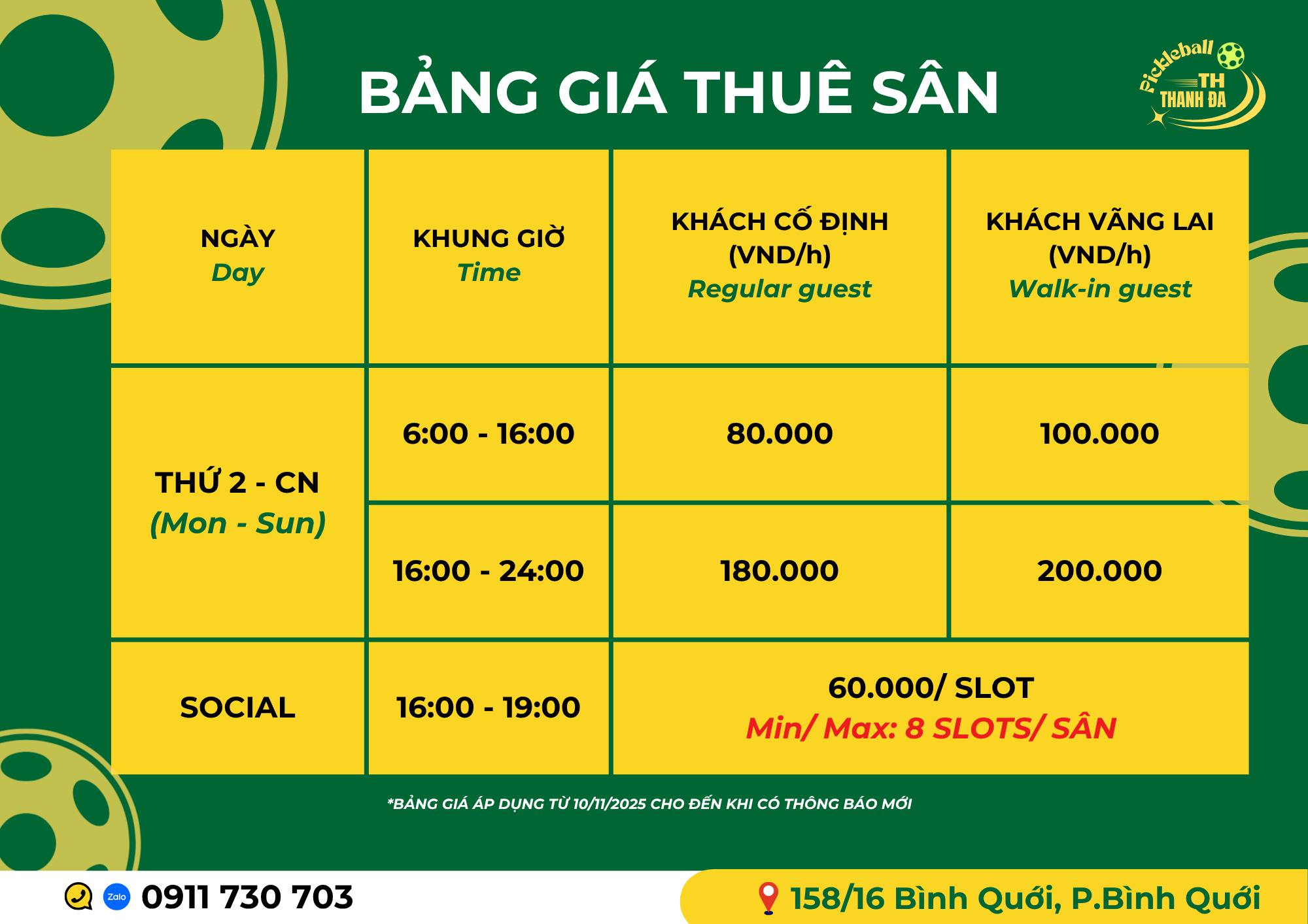 Tọa lạc tại địa chỉ số 158/16 Bình Quới, Phường 27, Quận Bình Thạnh, Sân TH nằm ngay trái tim của bán đảo Thanh Đa. Đây là khu vực hiếm hoi tại Sài Gòn vẫn giữ được sự yên bình, tách biệt khỏi tiếng ồn khói bụi. Người chơi khi đến đây không chỉ để vận động mà còn để hít thở bầu không khí trong lành từ dòng sông Sài Gòn thổi vào.