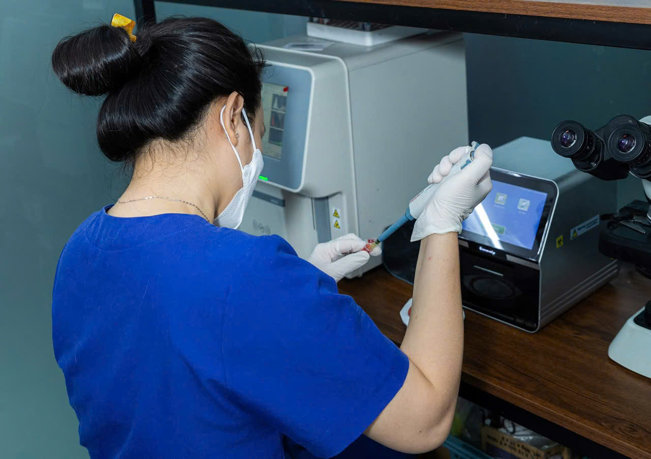 Phân tích trong phòng xét nghiệm bằng thiết bị hiện đại.